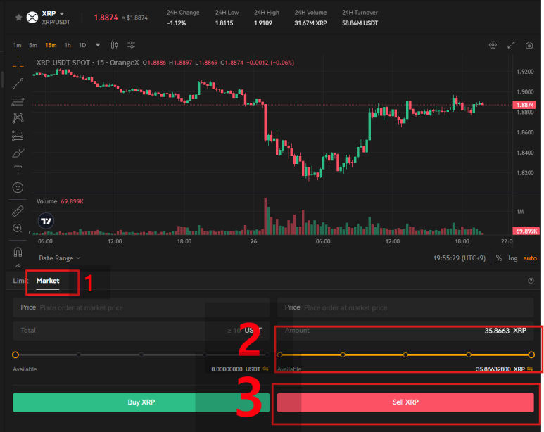 - [Sell XRP] 버튼 클릭 (즉시 USDT 확보 완료)