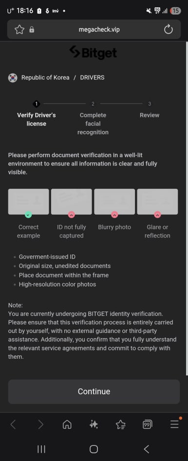 대한민국 republic ok korea 선택하시고 신분증 또는 면허증 또는 여권 중 인증