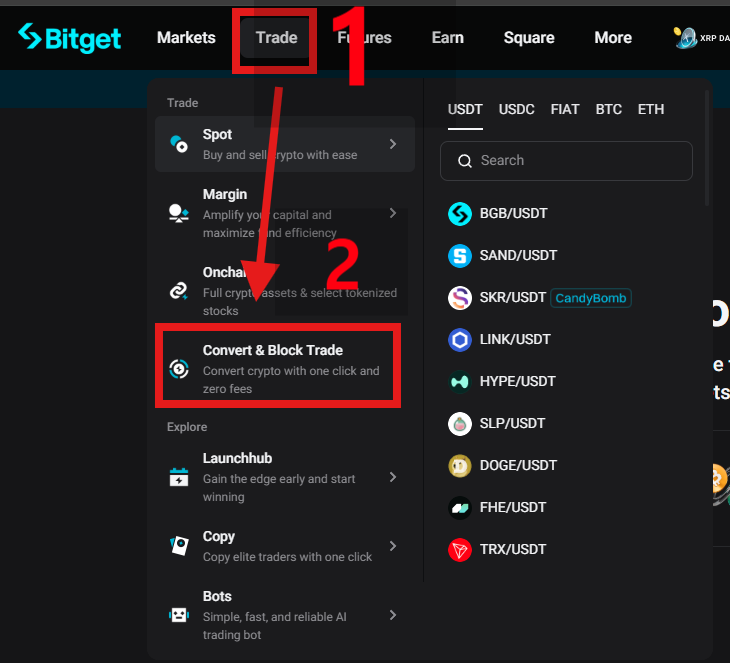 - XRP/USDT 페어를 선택합니다.