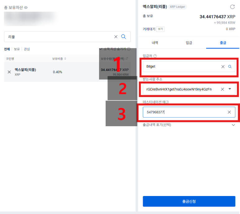 1) 업비트에서 **리플(XRP)**을 원하는 금액만큼 매수합니다.