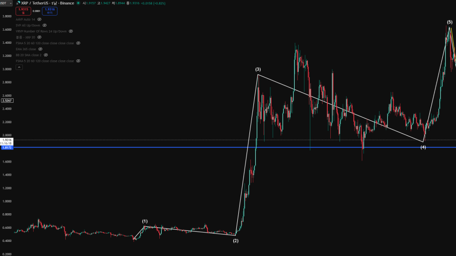 리플 차트를 오래 보신 분들은 아실 겁니다. 리플은 1파(상승 초입) 구간에서는