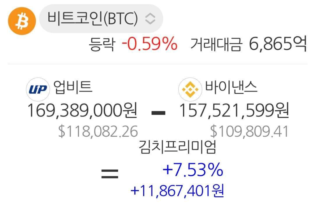 - 상황: 한국 시장에 광기가 돌아 김프가 10~20%까지 치솟았을 때. (남들은 비싸서 못 살 때가 기회입니다.)