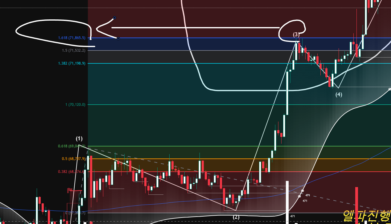 비트코인 상승 충격 파동 분석 및 71k 부근 단기 조정 전망